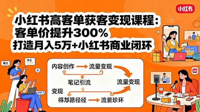 小红书高客单精准获客营销是2025年新媒体变现课程,涵盖流量底层逻辑、账号搭建、决策路径笔记等6大核心模块。通过置顶笔记优化与流量承接策略,结合高成交率资料设计,帮助学员实现客单价提升300%,转化率提高200%,打造月入5万+的小红书商业闭环。