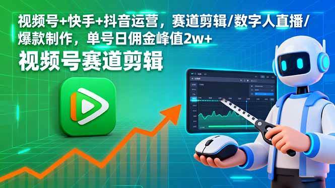 本课程聚焦短视频运营全链路实战,涵盖视频号、快手、抖音三大平台核心玩法:剪辑实操覆盖老年生活、进口商品、AI对话、美食口播、健身器材等20+热门赛道剪辑技巧,包括爆款文案改写、数字人制作、半无人直播等新技术(如克隆数字人、聚宝盆图文玩法); 运营进阶:账号申诉、暴力起号、橱窗开通、多账号管理、直播投流等关键技能。从零到精通,掌握最新平台规则与流量密码,快速实现短视频变现!