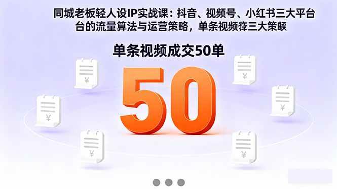 这是一门专为实体老板打造的短视频轻人设IP实战课程,系统讲解抖音、视频号、小红书三大平台的流量算法与运营策略,内容涵盖老板IP定位、爆款脚本创作、拍摄剪辑技巧、内容运营及AI创作等核心模块,通过人设打造实现同城获客与成交转化,帮助实体商家低成本高效获取客户。